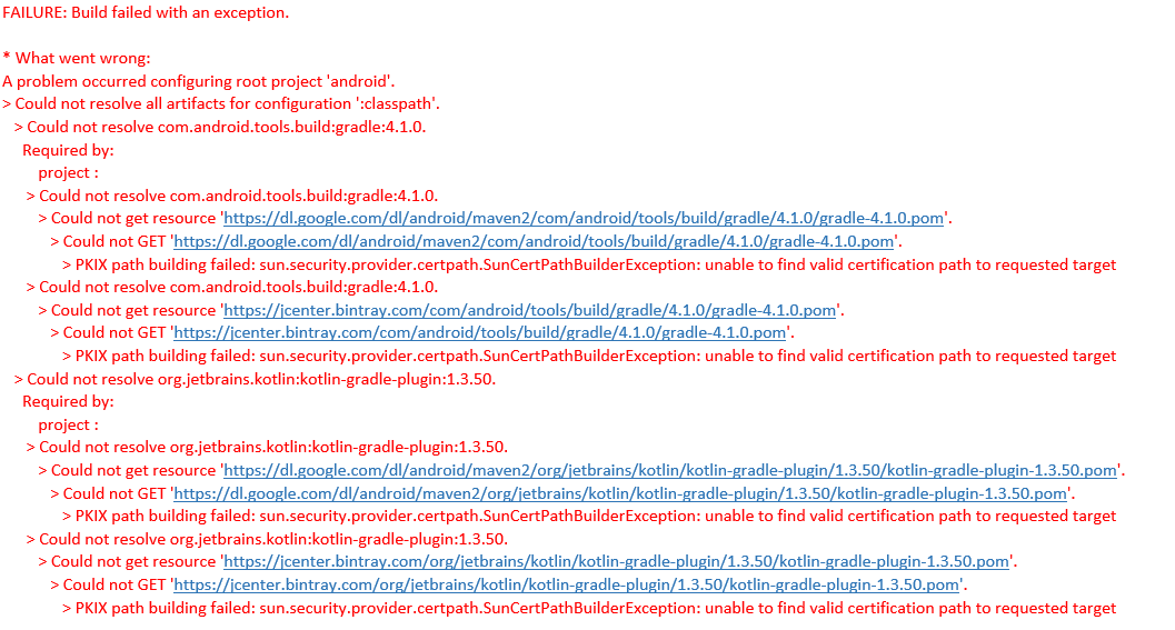 systemProp.javax.net.ssl.trustStore=C:/Program Files/Android/Android Studio/jre/lib/security/cacerts systemProp.javax.net.ssl.trustStorePassword=changeit
