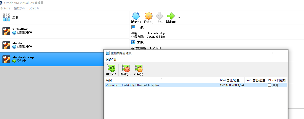 4.此設定Host主機連至VM主機,用192.168.208.3,而VM主機連Host主機則用192.168.208.1