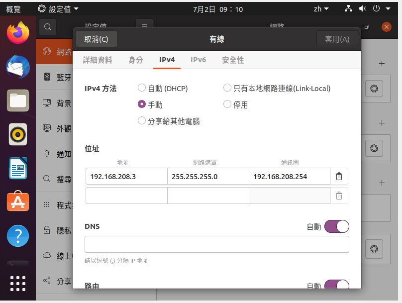 DHCP記得勾選不啟用,否則每次重開機後IP會變