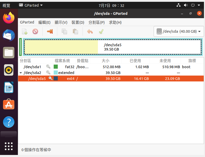 一開始以為沒辦法將/目錄由19.5G擴充至39.5G,